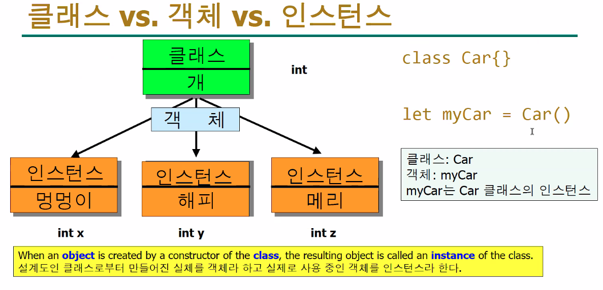 - 클래스를 바탕으로 실제로 생성된 객체입니다.