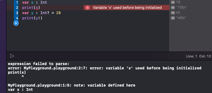 Optional 변수의 초깃값이 없으면 "nil"(값이 없다)이라고 출력된다.