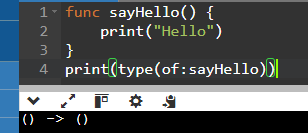sayHello() 함수의 자료형은 () -> () 으로 나옴.