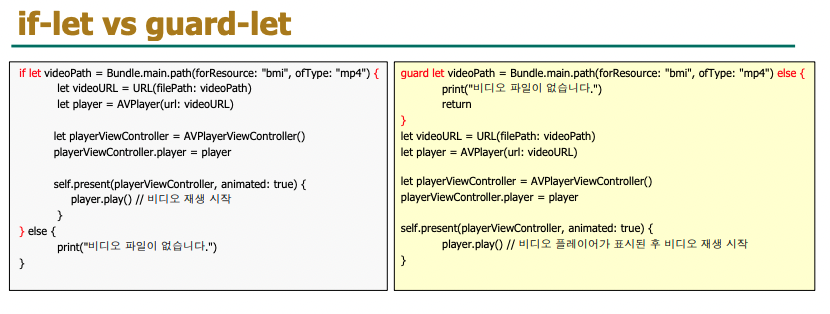 하지만 guard let은 해당 블록을 벗어나도 언래핑한 값을 쓸 수 있음.