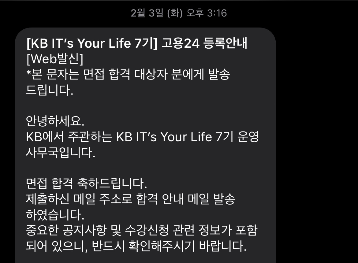 오늘은 KB IT's Your Life 7기 전공자 합격 후기를 풀어볼게요.