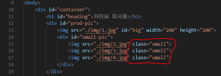 작은 사진들의 class 값이 전부 "small"입니다.