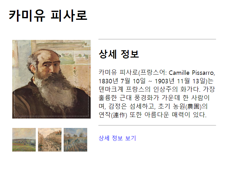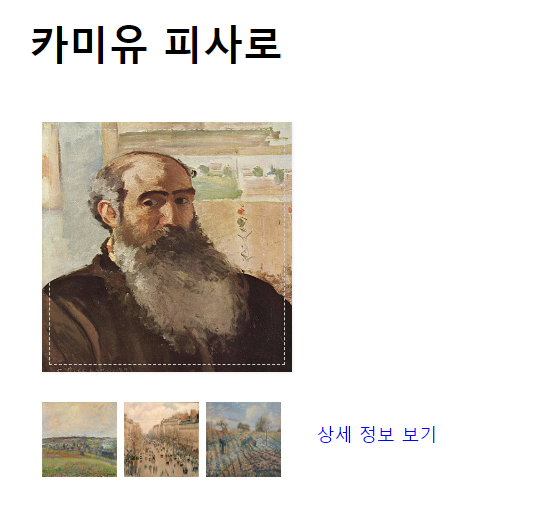 이렇게 적어주고 "카미유 피사로" 글자를 클릭하면 글자의 색이 변합니다.