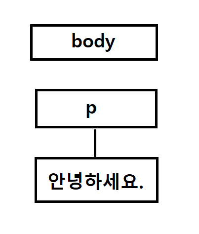 이렇게 해주면 저희는 <p> 노드와 텍스트 노드를 만들었습니다. 하지만 지금 이 상태를 그림으로 보면