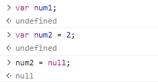 - undefined : 처음부터 변수의 값이 할당되지 않음